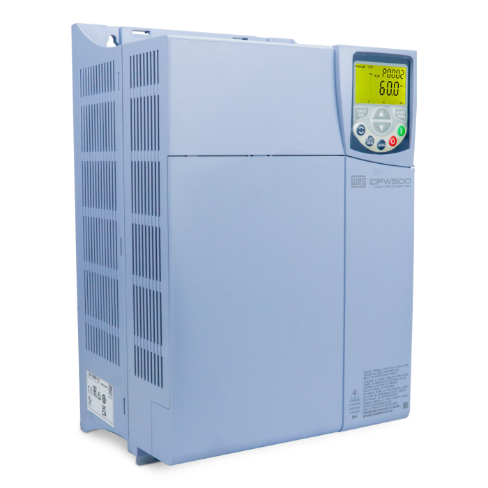 Com design moderno e faixa de potências de 0,25 a 175 cv, o inversor de frequência CFW500 é um acionamento de velocidade variável de alta performance, que auxilia no controle de velocidade e torque em motores de indução trifásicos. O equipamento conta com controle vetorial sensorless, vetorial com Encoder ou escalar e controle de motores de ímãs permanentes, SoftPLC, que agrega funções de CLP (Controlador Lógico Programável), Funções de Segurança STO e SS1, Pump Genius, que traz funções dedicadas para bombeamento e módulos plug-in selecionáveis, que proporcionam uma solução flexível e otimizada para qualquer aplicação.