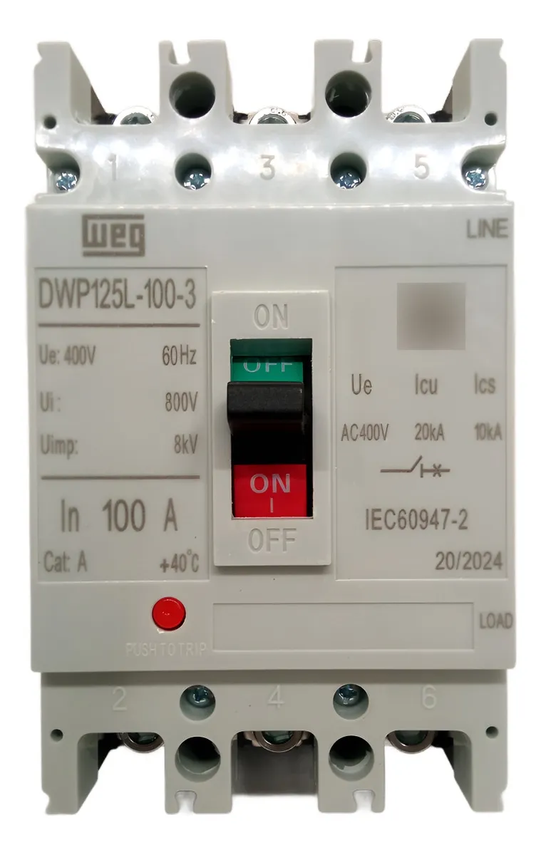 Disjuntor Caixa Moldada DWP Tripolar 100A 20Ka 380/400V 60Hz Weg